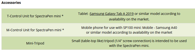 Mobile phone for use with SP100 mini: Mobile - Samsung A40 or similar model according to availability on the market.