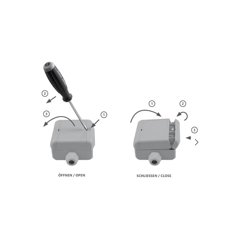 The humidity and temperature sensor is very well protected against contamination by a screwable sintered filter and can, if required, be finely calibrated in the register using an offset value. As special equipment a potential-free alternating contact and/or a backlit display are available The contents of the display can be rotated in steps of 90° by using a command.