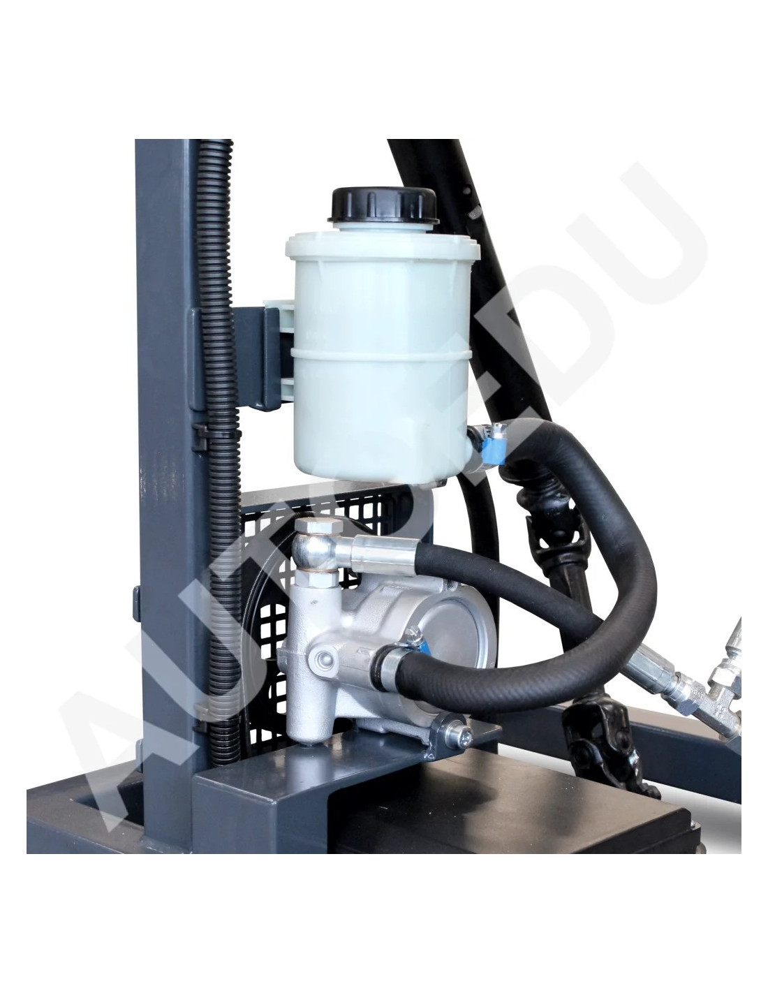 It features a complete hydraulic power steering system with genuine components, including a steering fluid reservoir, steering pump, rotary valve, and hydraulic chamber, providing a realistic simulation of vehicle steering mechanics.