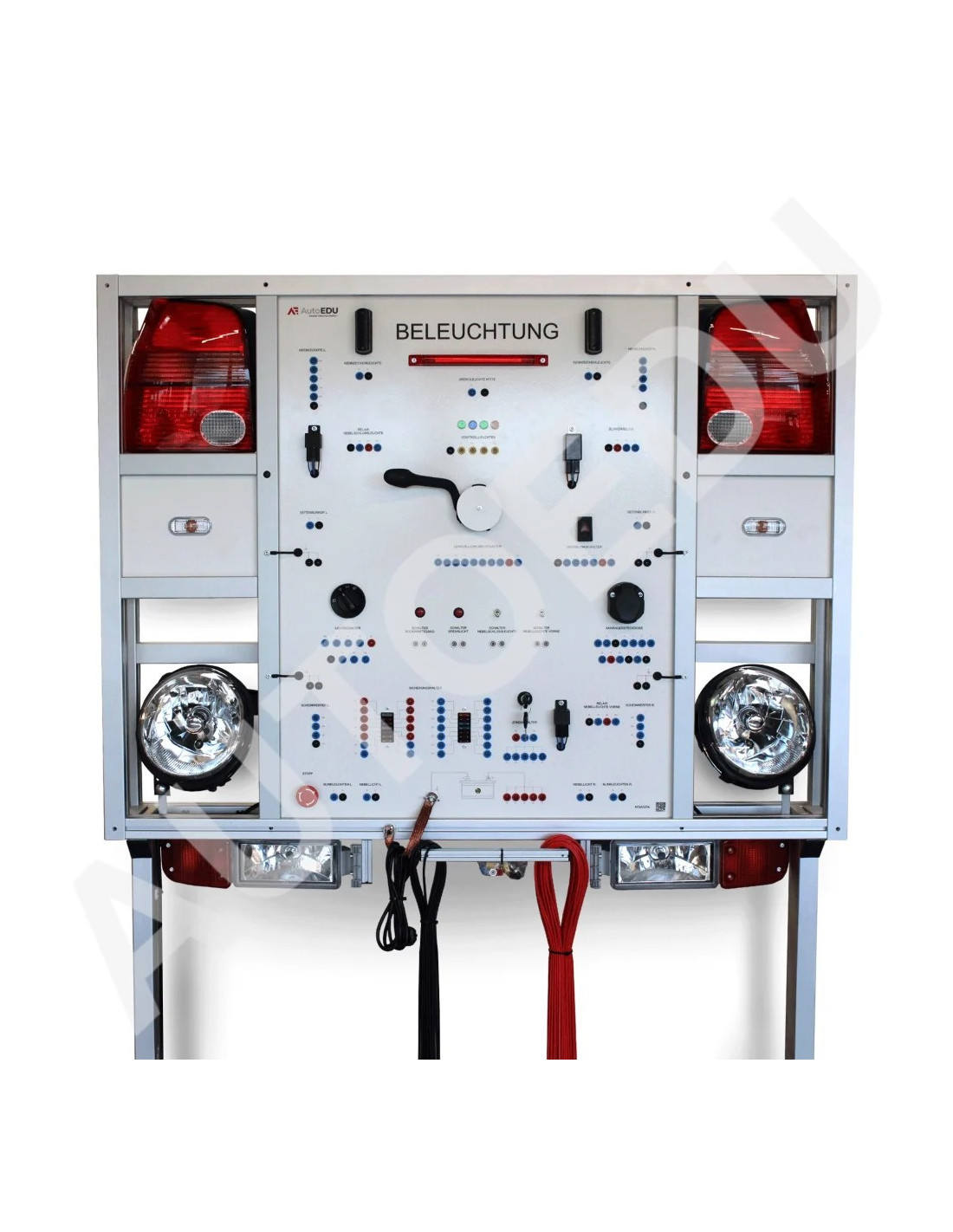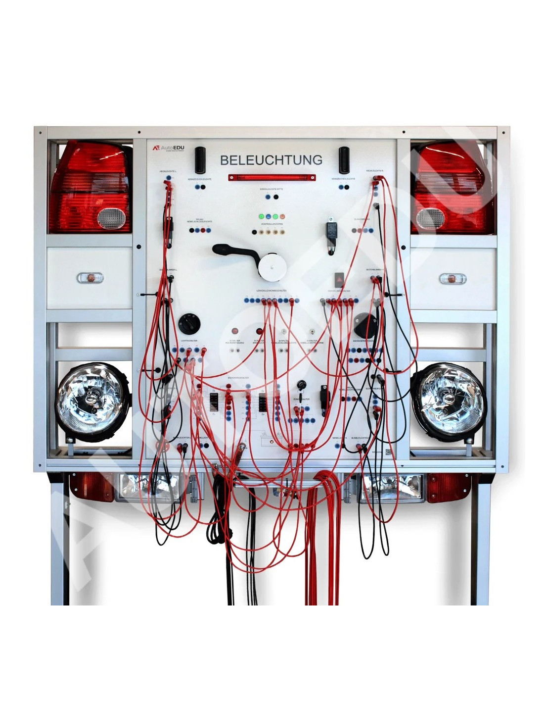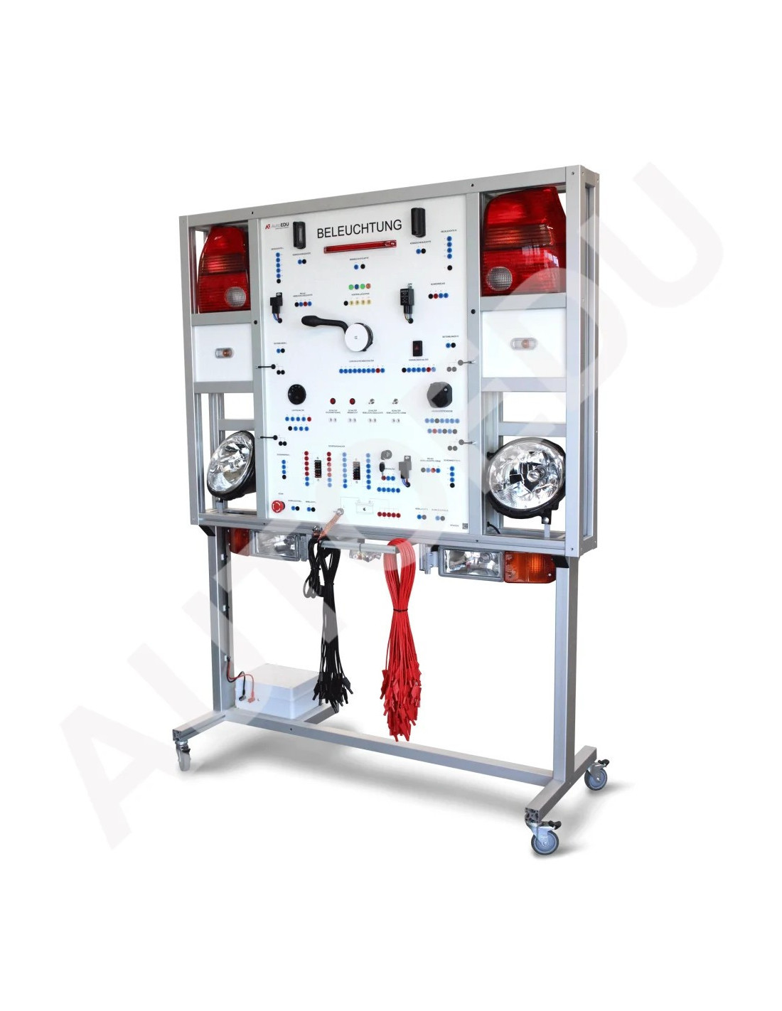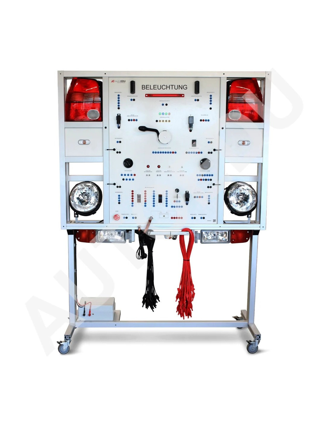 Practical educational trainer designed to demonstrate the full operation of an automotive lighting system.