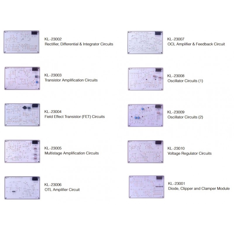 El KL-200 Laboratorio de Circuitos Lineales - Laboratorio de Circuitos Electrónicos, incluye los siguientes 17 módulos de experimentación: