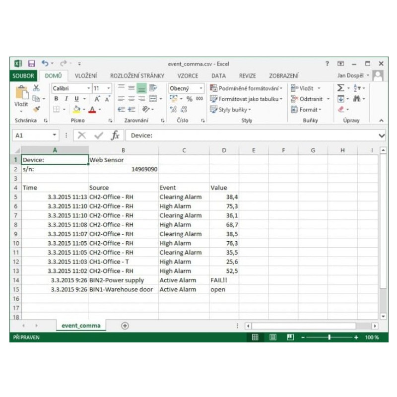 ◆ Sensor Web P-line com PoE (função Power over Ethernet) para medições de temperatura, humidade relativa e três entradas binárias para sinais de dois estados.